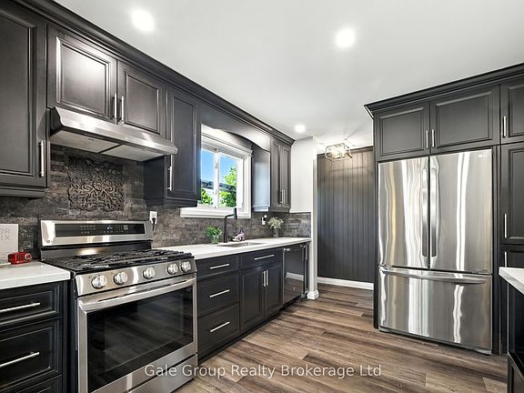 Stylishly Renovated & Fully Accessible Bungalow in Prime Location. Beautifully updated 2+2 bedroom bungalow offering modern comfort, function, and full accessibility for all stages of life. Features include an open-concept layout, renovated kitchen (2018) with modern finishes, updated main bath and spacious primary suite with walk-out to the covered deck and beautiful backyard garden oasis. The primary suite had been converted to allow for additional space, with the option to easily convert back to 3 bedrooms. Fully finished basement with separate entrance, 3-pc bath and in-law/guest suite potential. Other upgrades include new furnace (2023) and water heater (2025). Private, fenced backyard with mature landscaping, gazebo, 2 sheds, and rare 6-car parking with carport. Prime location to walk to GO Bus, shopping, schools, restaurants, trails and parks. Inclusions: Fridge, stove, dishwasher, microwave, washer/dryer, Nest thermostat, window coverings, water softener, 2 sheds, gazebo, natural gas Weber BBQ.