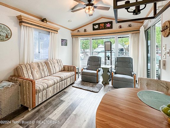 This well maintained Park Model in Star Valley Ranch RV Park is the ideal retreat for summer getaways. With its covered patio, outdoor cooking and entertaining is a joy, and having a shed for extra storage offers convenience. The turnkey nature of this home makes it a hassle-free option for those looking to start enjoying summer 2024 right away. The amenities offered by SVR RV Park, such as pickleball courts, a swimming pool, and proximity to hiking trails, provide ample opportunities for recreation and relaxation amidst the stunning mountain scenery. Plus, having nearby restaurants and golfing options adds to the appeal of this resort-like community.