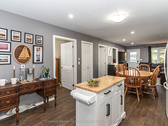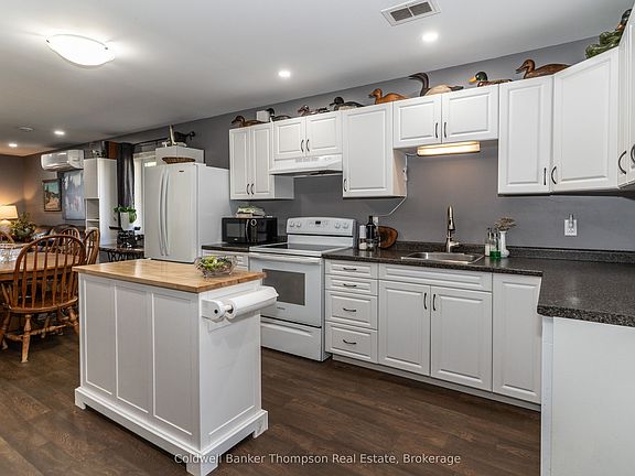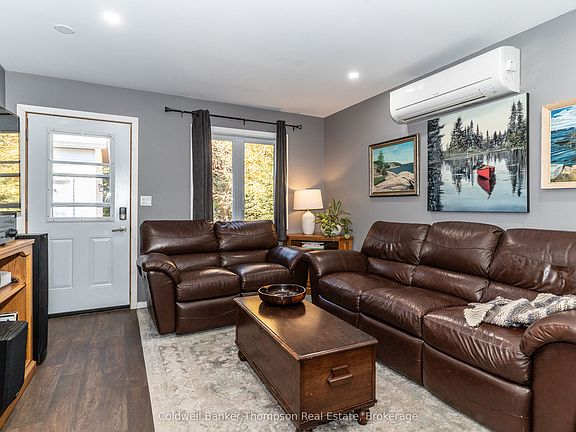 SUNDRIDGE bungalow- 2 bedrooms . Move in Ready including many upgrades (list available) including heat pump for back up heat/AC, appliances, and outdoor additions of barbeque hookedup to gas, and frost resistant tap. Front and back garages have comfortable heated additional enjoyment spaces. F/A Radiant (gas) heat, drilled well, municipal sewers, fiberoptics internet. A perfect set up for young or old .... this is an opportunity that is not offered each day ! Located on edge of town within walking distance to downtown and waterfront of popular Lake Bernard .