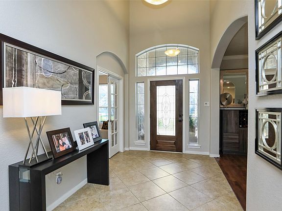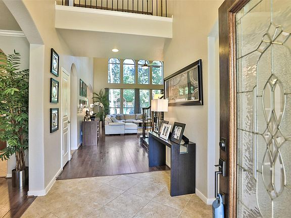 Backing to a heavily wooded greenbelt, pride of ownership is evident with this immaculately maintained 5 bedroom, 3.5 bath home with study & game room. Soaring ceilings, walls of windows, hardwood floors, wood stairs, grand 2 story entry with wrought iron spindles accent the new stacked stone fireplace. The stunning primary bath was recently remodeled with a new tile shower, jetted tub, granite counters, new hardware, fixtures and new tile flooring. The walk-in closet is enhanced with built ins. The expansive island kitchen has stainless appliances, granite counters, stained 42" cabinets & recent 5 burner gas cook top. Upstairs is a large game room, 4 spacious bedrooms and 2 full baths (one is Jack and Jill). The home is tastefully decorated with current neutral colors and it is spotless! The study has a built in desk, credenza, and cabinets. The lush landscaping makes this beauty a stand out. The private backyard is framed with trees, large patio and pergola. This home is a gem!