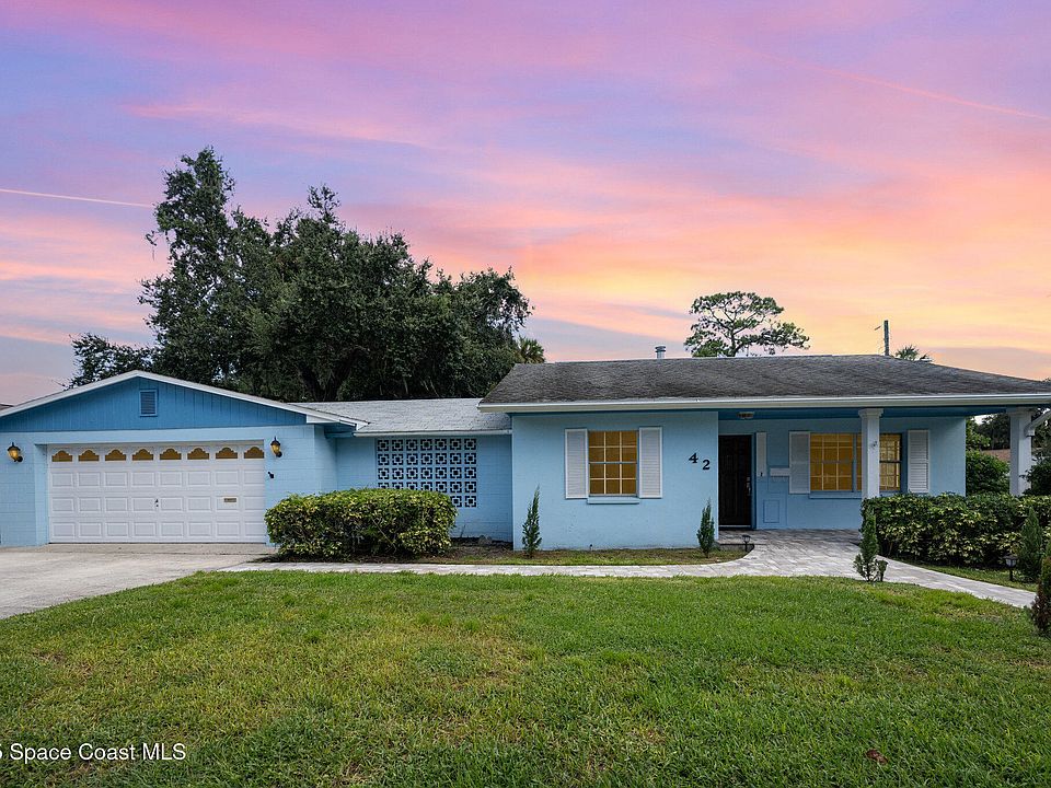 Celebrate Old Florida charm coupled w/delightful updates in this vintage cottage-style home. Distinct living & dining flow together for easy entertaining. Hardwood floors span throughout as 2 versatile flex rms present endless possibilities. One is a spacious step-down area off the kitchen, w/access to the screened porch. It's an ideal spot for a family or game rm. The other is a large step-down space w/entry to the garage & one of the 3 bdrms. This expanse could be an in-home office, a hobby hub, or gym. The kitchen fashions throwback character while offering white stone counters, a subway tile backsplash, white cabinetry, a SS refrigerator & dishwasher. The tub/shower bath is nicely updated w/a mid-century modern touch. Enjoy breezy evenings on the screened lanai overlooking a lush backyard. LAWNCARE INCLUDED & reclaimed irrigation water saves you money! The Indian River is a block away & the shops & restaurants of Cocoa Village are an 8- minute bike ride!