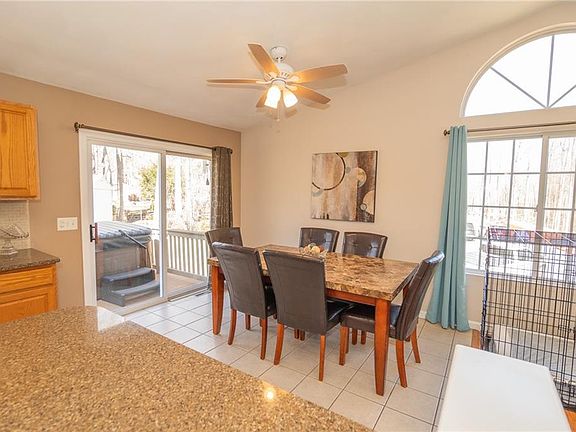 Beautifully maintained open-concept Raised Ranch with in-law potential is waiting for you. Nestled on a quiet cul de sac this 3-bedroom 1-bathroom home offers serene living. The kitchen has updated cabinetry, quartz countertops which opens to a dining area and living room creating a seamless flow for everyday living and entertaining. Cathedral ceilings in these areas add to the spacious open feeling. It features many updates which include: updated bathroom, Central Air, newer furnace, newer roof, easy-to-maintain vinyl siding, and large shed. The kitchen sliding door leads to a deck with a luxurious 6-person hot tub. This home has over a half acre of meticulously maintained landscaping, a driveway that can accommodate 6 cars, plus a finished garage. LOCATION, LOCATION, LOCATION .... easy highway access, 15 minutes to Providence and the train, conveniently located to schools, shopping centers, and restaurants. This property is ready to become your dream home.