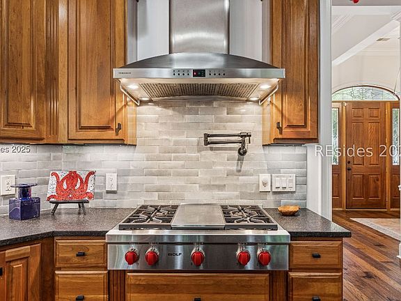 EXUDES QUALITY THROUGHOUT. Beautiful ceiling details, rich wood flooring, high-end hardwood cabinetry, top-tier appliances, leathered granite counter tops and stunning baths enhance this exceptional home. Masterfully renovated 2024. New roof 2024. A peaceful setting positioned on a lush homesite just a short stroll from the Belfair Sports and Lifestyle Campus, an unsurpassed amenity in the Hilton Head/Bluffton area. The appealing and functional open concept floor plan offers multiple living spaces for ease in entertainment, which include: Kitchen dining space, Family Room with fireplace, separate Dining Room with adjacent Living Room and versatile Bonus Room with an alcove office. The wonderfully designed Primary Suite, secluded from the other rooms, provides a private sanctuary. A welcoming upscale casual residence. Impeccably maintained.