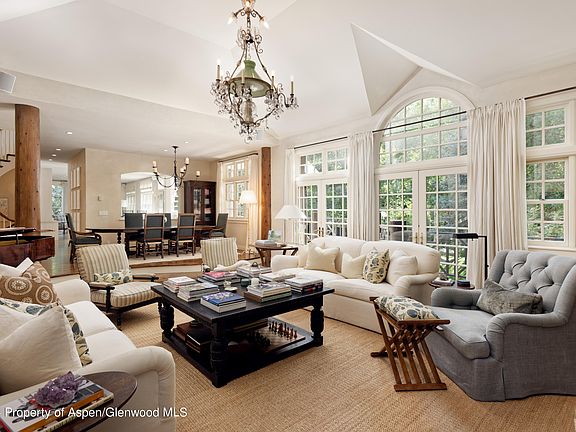 gatherings. The formal dining room, conveniently located off the beautifully finished kitchen also enjoys the tremendous gas fireplace in the living area. The nicely appointed kitchen extends into a new family room perfect for casual dining or movie nights. This family room also boasts French doors leading to a stone patio and an additional flat yard prepped for a hot tub. Adjacent to the secondary living space and kitchen, you'll find a laundry area and a spacious two-car garage with extra storage. A custom-built, wide curved wood stairwell ascends to the sprawling primary suite, complete with a gas fireplace, sitting area, private office, views of Independence Pass, private deck, his and her walk-in closets, and a luxurious master bathroom that looks out to Independence Pass as well as the serene, beautifully landscaped yard. The fully-fenced in flat grassy yard offers privacy, security and safety for homeowner and pets. On the guest bedroom floor, which opens directly to the expansive yard, there are three additional guest suites, each with ensuite bathrooms. Mature landscaping, lush flower beds, an elevated tree house and basketball hoop complete this peaceful haven. Knollwood stands out as a unique subdivision with no HOA dues, walkable and bikeable to town. Owners have continuously made upgrades and improvements to this immaculately maintained home. The privacy, extensive yard, and prime East Aspen location make this property one of the most desirable in all of Aspen under 20 million. Free Dial a ride picks you up at your driveway for easy ski access to the gondola. New roof installation November 2024. New AC heat pump split system for primary suite and living room. Large organized mechanical room with easy exterior access.