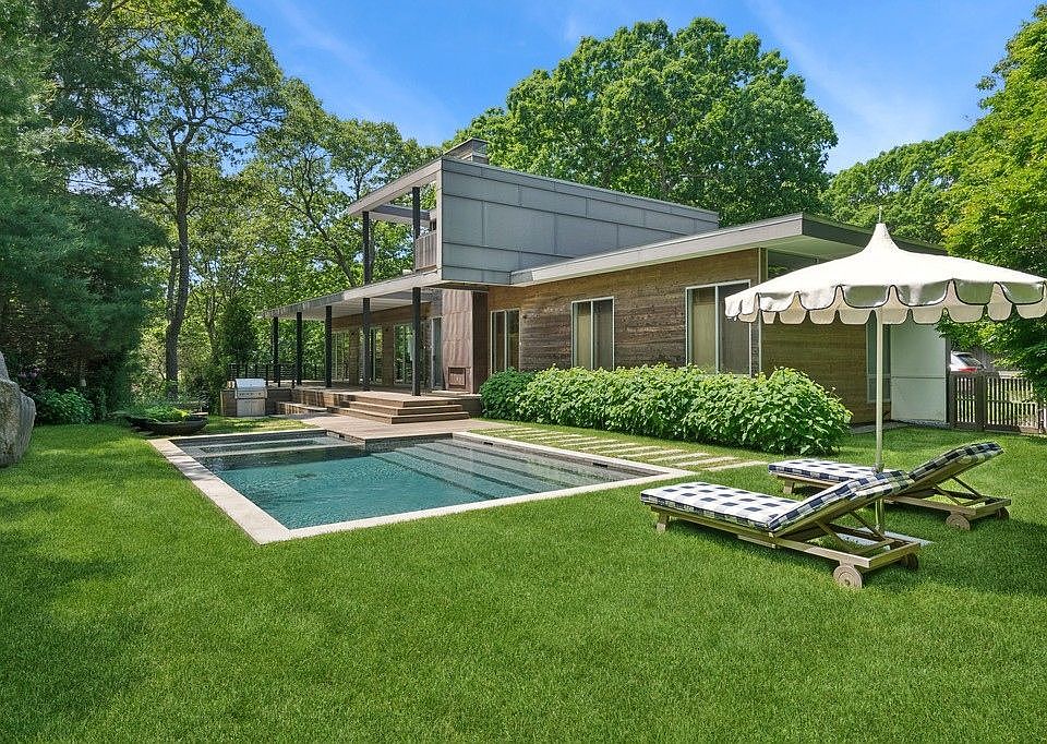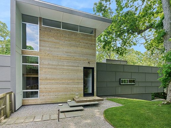 Nestled on a beautifully landscaped shy half acre in the coveted waterfront community of Barnes Landing, is a one-of-a-kind modern gem. Originally designed by Paul Masi of famed Bates Masi + Architects as his personal residence, this masterpiece was lovingly built to be the perfect Modern Oasis. This stunning architectural tour de force features seamless indoor/ outdoor living spaces. The loft-like main floor integrates a Gourmet kitchen, dining and living room with walls of glass that open onto a huge outdoor deck with both open and covered areas for outdoor dining and lounging. There is a two-sided fireplace that operates both one of the main house rooms as well as the outside deck area. The home boasts a primary suite on the second floor and a light filled office area. The primary full bath also celebrates the indoor/outdoor living concept with a shower that opens to an exterior deck. The main floor in addition to the beautiful living spaces, currently boasts three bedrooms and a full bath. The lower level which opens to the back yard, has an additional huge living room plus an additional full bath. The superlative architecture coupled with wonderful interior design including pops of burnt orange colour, luscious wood tones and huge oversized accordion glass doors and windows allowing for rays of light to punctuate the rooms, calls for a transcendent living experience. The home is indeed a jewel box with multiple custom built-ins to utilize space and storage. More recent upgrades include the heated Gunite pool and spa, a built-in Lynx gas grill, and high end appliances including Wolf and Miele. The perfect oasis is awaiting the next discerning connoisseur.