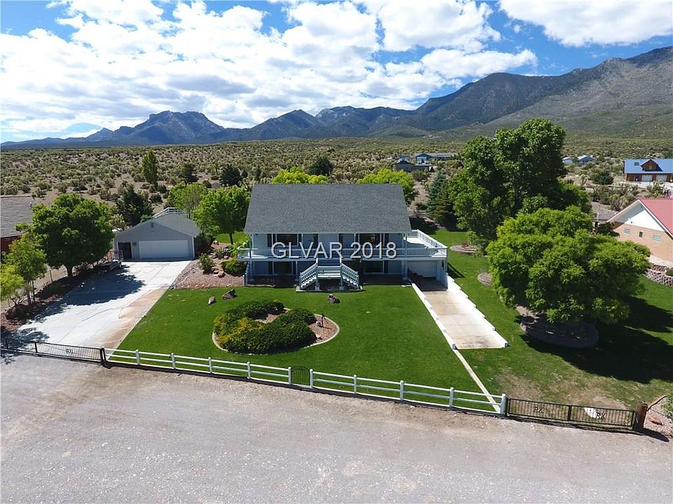 Retreat to this beautiful Cold Creek country sanctuary w/exceptional, longrange mtn views. A picturesque setting of a lush manicured landscape w/soothing water feature awaits. Enjoy the inviting, old-fashioned wraparound/covered deck. Flowing floorplan illuminated w/natural light. Mostly furnished+turnkey. Entertain w/the builtin BBQ/kitchen. Fully fenced with access gates & ample parking. 3-car garage total. Deer, elk, wild horses roam the area.