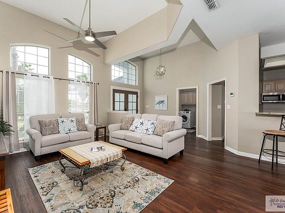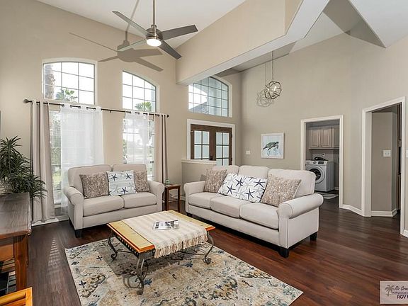 Located in the desirable Estates section of the SPI Golf Community, this 2,300 SF home with a bonus room offers an open layout on an oversized lot. Recent upgrades include a new water heater, exterior paint, custom stone veneer, roof, HVAC, fixtures, treated cedar fascia, a new garage door, and remotely operated fans/lights. Interior features granite counters, stainless steel appliances, his & hers walk-in closets, new flooring, and a custom French entry door. A long driveway leads to a deep 2+ car garage—ideal for boats, golf carts, or a workshop. Enjoy an extra-large screened-in patio, a coastal breeze, mesmerizing sunsets, and resort-style amenities, including tennis, pickleball, pools, a clubhouse, and a fitness center. Golfing, and dining within the community—minutes to South Padre Island beaches, shopping, dining, entertainment, and major employers, including SpaceX & LNG.
