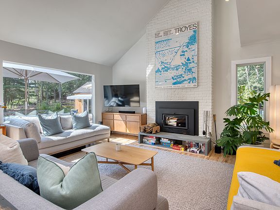 Rental Registration #: 24-1404 Abundant sunshine and stylish finishes combine with a great layout in this contemporary home very close to East Hampton village. A great room with wood-burning fireplace and sliding doors offers a fantastic entertaining or gathering space. The bedroom layout allows for privacy and separation if needed, while the pool house (currently configured as a gym/office with full bathroom) provides work from home privacy. With fun amenities like a hot tub, outdoor shower, firepit, double grills, extensive decking and a large pool, this is a great vacation spot or a wonderful full time home.A great deal of new furniture has been added for 2024, both indoors and out, as well as wall-mounted TVs in every bedroom. [[Rental Registration # 24-1404]]