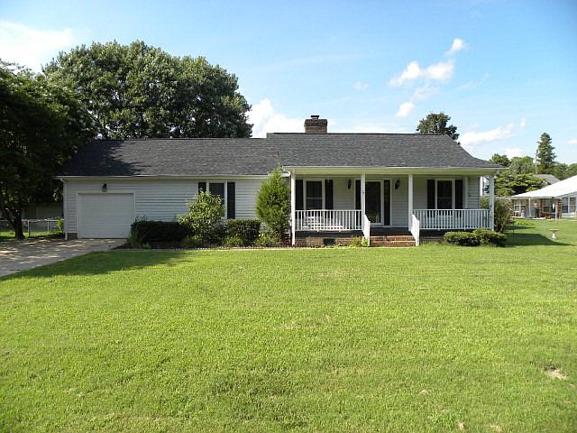 SAVE ON TAXES!! City schools, city water but no city taxes (school tax only)!! Very nice ranch home built in 1989 with an attached garage, back deck, fenced back yard, storage building and 8 x 28 front porch. Hardwood floors were added in 2008, dimensional roof in 2013 and gas pack in 2014. Most windows are tilt in vinyl replacement windows. The master bedroom has 2 closets and a large bathroom with a jetted tub and stand up shower. The other bedrooms are on the opposite side of the house with a bath in between. The back side of the fireplace is in the kitchen/dining area and adds character.