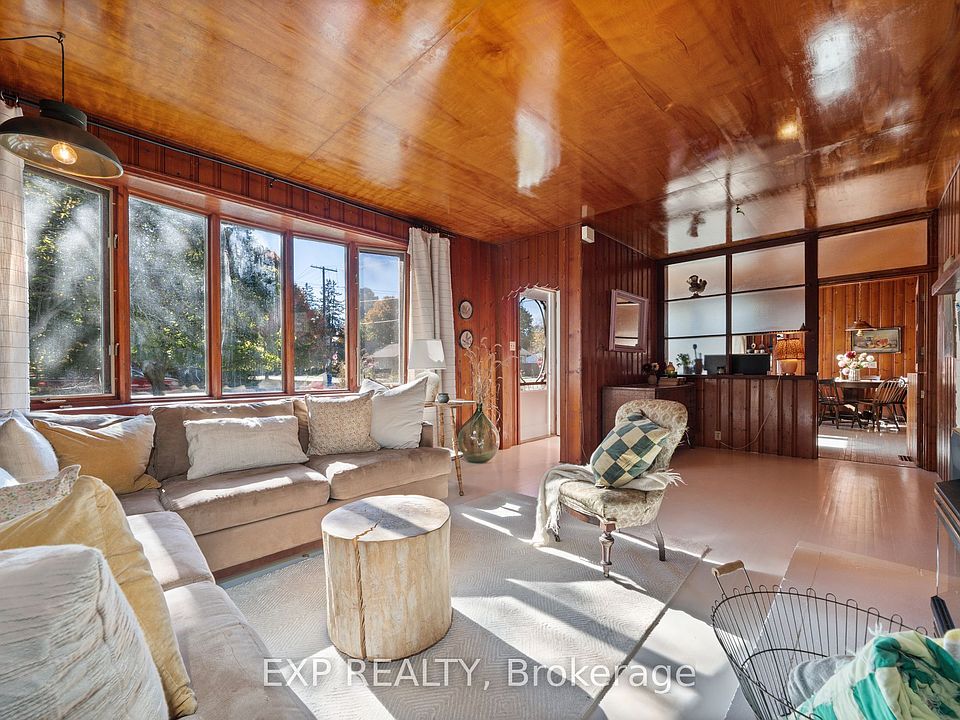 Retro Revival in the Heart of Picton. Step back in time-in the best possible way-with this lovingly restored 1953 bungalow where vintage character meets modern comfort. Freshly updated and brimming with mid-century quirk, this one-level home captures the playful spirit of the era with its warm wood paneling, cheerful details, and inviting layout. Inside, you'll find an airy living/dining space anchored by a gas fireplace with brick surround, and a sunny West-facing eat-in kitchen. The flexible layout includes three bedrooms, with the spacious primary easily doubling as a family room, sunroom or creative studio. Recent updates celebrate the home's original craftsmanship while adding modern convenience, including an updated kitchen and refreshed 3-piece bath. An attached garage with high ceilings offering plenty of storage, and a main level laundry, add practicality to its vintage appeal. Set on a large corner lot with beautiful flower gardens, and a fenced rear yard surrounded by mature trees, this home offers privacy, sunshine, and a dash of nostalgia-all within walking distance to downtown Picton's shops & restaurants, and just steps from PECI - a K-12 school. Whether you're an artist, a design lover, or simply someone who appreciates the charm of a bygone era brought tastefully into the present, this one's ready to make you smile.