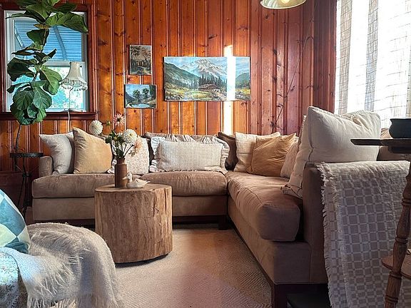 Vintage characterModern comfortMid-century quirkWarm wood panelingCheerful detailsInviting layoutSunny west-facing eat-in kitchen