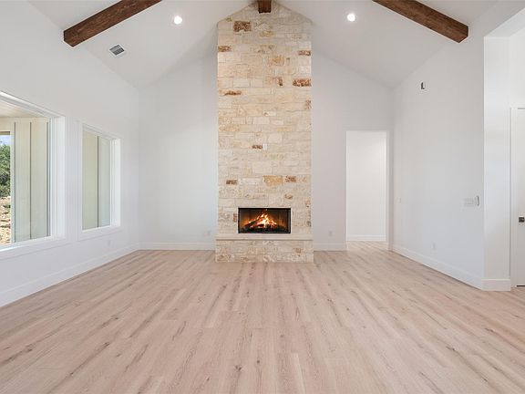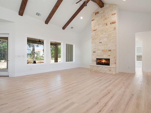 Preferred Lender Incentive: Builder is offering a 2/1 Buydown when you use their preferred lender, Louis Balady of Town Square Mortgage. Rates are subject to change & buyer qualifying. Seller Credit for buydown is negotiable & must be written into the initial offer for consideration & approval. Crafted by River Hutchinson Homes, this thoughtfully designed 4 bed, 4 bath home with a bonus room offers elegant living in the heart of Wimberley. An inviting front porch leads into a bright, open-concept layout with soaring ceilings, exposed beams, and Cottage Oak wood floors. Anchoring the main living area is a stunning stone fireplace that brings warmth and character to the space. The living, dining, and kitchen flow seamlessly, ideal for both relaxed living and effortless entertaining. The kitchen is a true centerpiece, featuring a center island with bar seating, quartz countertops, stainless steel appliances including a cooktop and wall oven, and a generous walk-in pantry. The dining area offers lovely backyard views. The primary suite is privately situated in its own wing, offering a bedroom filled with natural light and a spa-inspired ensuite bath with a soaking tub, walk-in shower with herringbone Caspian Blue tile, dual vanities, and a large walk-in closet. On the opposite side of the home, three additional bedrooms provide ample space, including one with a private ensuite bath, ideal for guests. Upstairs, a versatile bonus room with a full bath provides the perfect space for a home office, media room, or extra guest accommodations. Outside, the covered patio is perfect for al fresco dining, barbecuing, or just unwinding at the end of a long day. Enjoy the peaceful rhythm of Hill Country living with close proximity to Wimberley's favorite spots like Cypress Creek Coffee House and Community Pizza & Beer Garden. Explore nearby natural attractions like Jacob’s Well, Blue Hole Regional Park, and the Blanco River, or take in the local charm at Wimberley Market Days.