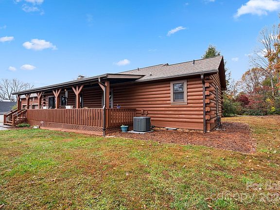 No Storm damage! This charming updated one-level log cabin offers the perfect blend of rustic charm and modern convenience. The vaulted ceiling living room features a gas log fireplace with several updates, ideal for chilly evenings. The home boasts three bedrooms and two full bathrooms, providing ample space for comfortable living. A spacious attached two-car garage and a large freestanding outbuilding with electricity (own 220 hookup/no separate meter) offer versatile storage options for vehicles, tools, or a She-Shed. The newly renovated kitchen has plenty of countertop space, soft-close cabinets, and most of the appliances are new. Situated on a spacious .66-acre level lot in a well-maintained Flat Rock neighborhood, this home provides a serene escape. Enjoy the proximity to grocery stores, downtown Hendersonville, and I-26, while being tucked away in a tranquil area bordered by iconic Henderson County apple orchards.