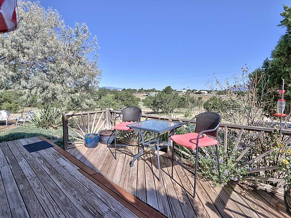 It is nestled in the heart of Edgewood and so close to Albuquerque. You can have the best of all worlds. Terrific views of South Mountain to enjoy! Community water, 2 car garage, fenced backyard for your pets. There are many wonderful decks outside to sit and relax and enjoy the beautiful East Mountain weather! Great open floor plan for this 3 bedroom, 2 bath home located in a very nice private setting. Living area features vaulted ceilings , open floor plan with large kitchen and breakfast nook. Master bedroom included its own master bath, 2 sinks, shower and garden tub. Additional 2 bedroom have their own full bath. Country living but close to shopping and schools. Easy commute to Albuquerque, just minutes from freeway entrance. Now is the opportunity to get away from the city!