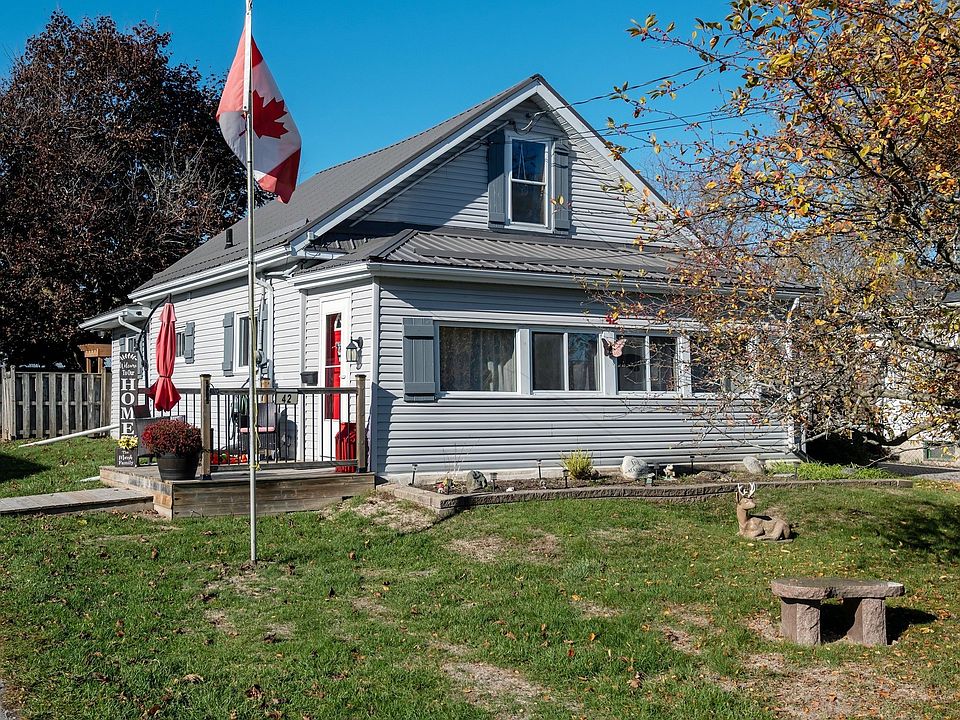 Great family home, close to most amenities and right across from an elementary school. Imagine being able to watch your children walk to school from your front window! And, when they get home, a 259' deep lot to play in. This one comes with the play structure, play house, a fire pit and newer 10' x 16' shed with power so you are set.  Let's head inside. The spacious eat-in kitchen features a pine ceiling; lovely backsplash and plenty of bright white cabinets with a seperate coffee/beverage hub. The kitchen appliances are included too. For convenience, a mud/laundry room right around the corner and access to the back yard.  The living room is cute and cozy. Down the hall are two bedrooms and an oversized sunroom which we use as a play room for the kids. The upper level features a generous bedroom and a family room. Both with closets so if you need that fourth bedroom, this might be the spot. Worth mentioning and approximate ages: Metal Roofing 5 years; Mostly double pane windows; 100 amp breaker panel; Forced Air Gas Furnace 17 years; Hot water tank 3 years;  partially fenced yard and the single car garage is actually 22'1 x 25'8 so makes for a great workshop as well. Some Measurements less jogs. For over twenty-five years, this family has loved this home; the neighours; and the area but unfortunately have outgrown it. They are happy to give a new family the same opportunity.