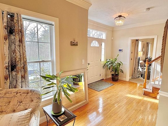 This elegant 4 bed Colonial sits on a quiet, scenic street, less than a mile from Upton town center, and has been beautifully maintained and upgraded over the past few years. The bright, open kitchen features a surplus of granite counters, and has been outfitted with high end stainless appliances, including a smart refrigerator with internet access. Cook and entertain easily with living space that flows beautifully between the kitchen and family room with fireplace and built-ins, formal DR, and a quiet, formal sitting room that currently doubles as an office. Upstairs you'll find 4 spacious bedrooms with ample closets, highlighted by massive main br w/ vaulted ceilings, walk-in closet and en-suite bath with double vanity. Insulated attic and a full concrete basement with high ceilings gives you more storage than you could need, and walk right out to your extra wide, 2-car attached garage. Outside you're surrounded by peaceful nature, which you can enjoy from your lovely rear deck.