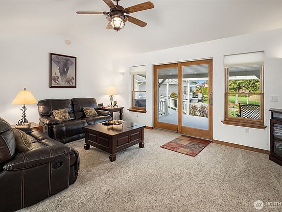 Welcome home to this beautiful well maintained rambler that sits on an acre! This 3bd 2ba home includes office space, vaulted ceilings, propane fireplace, skylights, a spacious chef's dream kitchen with island and much more! Primary bd offers en suite bath and walk-in closet. Venture out to the back yard to enjoy the gorgeous landscaping, gazebo and entertain on the maintenance free trex deck. Then for the pure entertaining space, bask in the beauty of the 33x72 heated detached shop/great room addition which includes a bathroom and office! The floor to ceiling rock fireplace is definitely the magnificent focal point! Newly painted exterior, newer roof and Anderson windows incl slider. Minutes to hiking trails, town, shops and much more!
