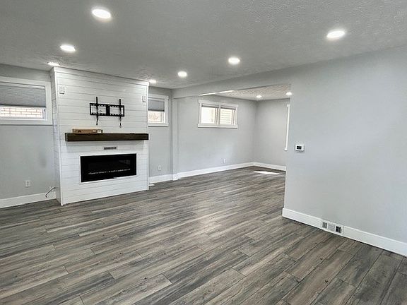 Flat backyardTile herringbone style flooringLarge front porchRecessed lightingOpen concept livingLots of natural lightTile shower