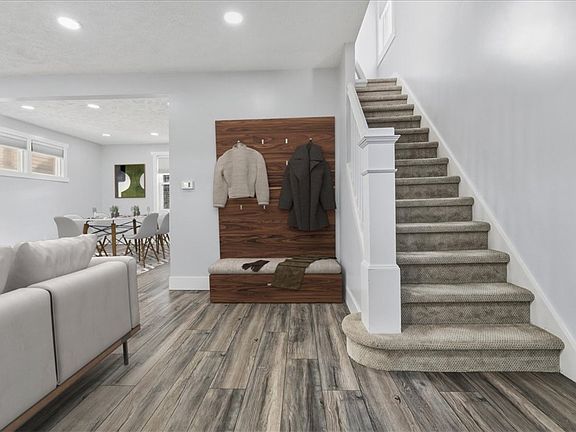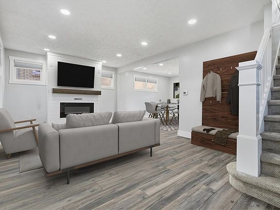 Discover a home where all the hard work has been done for you. The redesigned kitchen is the star, centered around a large butcher block peninsula perfect for gathering. White shaker-style cabinets, new countertops, and a full suite of appliances create a truly functional space. The open main level is bright with updated windows, abundant recessed lighting, new flooring, and a modern remote-controlled electric fireplace. Upstairs, three bedrooms are served by a fully renovated bathroom with impressive floor-to-ceiling tile & herringbone floors. Enjoy peace of mind with a professionally waterproofed, clean walkout basement featuring a sump pump, new PEX plumbing, and an updated 100-amp panel. This level offers great storage, laundry, and direct access to a fantastic, flat backyard. Designated off-street parking and a welcoming front porch complete this incredible package. Search the property address on YouTube for a full video tour.