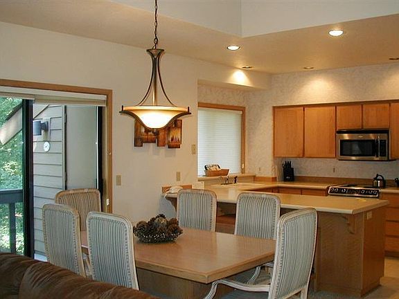 Great private location, unit backs to common area with easy access to bike path. Deeded co-ownership 6 weeks annual usage in an upstairs rental unit. Enjoy this well liked open floor plan with skylight, wet bar, gas fireplace, spacious master suite with Jacuzzi tub, second bedroom with two single beds. Weeks can be used or traded with RCI. Ridge amenities include pool, hot tub, tennis court & recreation room. This is a no pet complex. Furnished with 4 bikes.