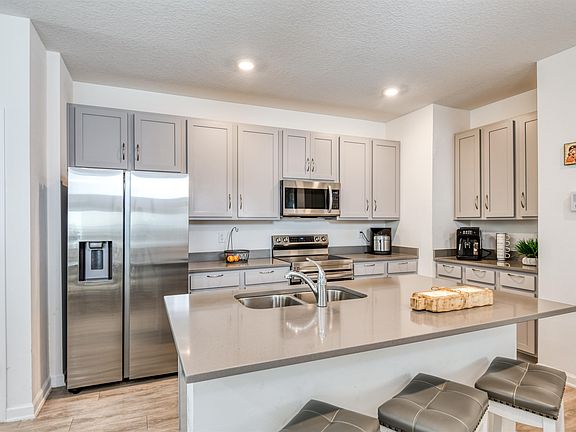 Built in 2022, this exquisite 1,505 sq. ft. end-unit townhome with garage offers 3 bedrooms, 2.5 baths, and a bright, open floor plan designed for modern living. The 9-foot ceilings and oversized 8-foot front and rear doors flood the first floor with natural light, while the stylish interior features quartz countertops, grey shaker cabinetry, and stainless steel Energy Star appliances. The kitchen island, makes entertaining effortless. Solid surface luxury vinyl flooring flows throughout the main living areas for a sleek, low-maintenance finish. Upstairs, the spacious primary suite feels like a retreat with a large walk-in closet and an en-suite bath featuring a double vanity and walk-in shower. Two additional bedrooms provide comfort and ample storage. As an end-unit, the home enjoys extra windows, privacy, and enhanced natural light. Outdoor living shines with an oversized backyard that can be fenced, offering preserve views and room to create your own private oasis—perfect for pets, little ones, or gatherings. Park Ridge enhances the lifestyle with a community pool, low HOA fees,, and no CDD. Centrally located, you’ll have easy access to St. Augustine’s historic district, shopping, dining, I-95, and the area’s pristine beaches. This home blends comfort, convenience, and coastal charm—all at your doorstep.