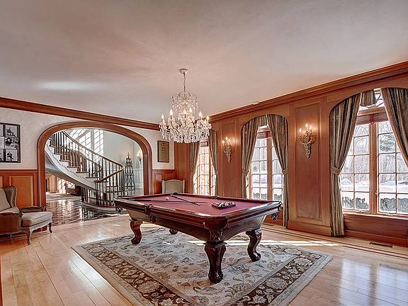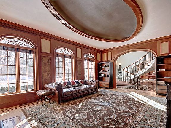Rarely available, and highly regarded - 42 Ridge sits atop "The Ridge" as its pinnacle estate. A gated entry leads you up an illuminated winding driveway, where the home and grounds arise in your view. A brick Georgian Colonial home complete with tennis court, pool & full pool house - bustling with an advanced heating/cooling system, home automation & security. The first floor of the home is host to a grand double staircase reminiscent of the Newport Mansions, with marble floor - flanked by the formal parlor & the formal dining room with seating for 18. The main gallery expanse matches the grandeur of the home and allows for entertaining and living ease. The great room with a coffered panel ceiling is basked in natural light, which can be darkened with the motorized shades. The remodeled modern kitchen features separate Sub-Zero Refrigerator & Freezer, Copper Country Sink, 6 burner Wolf stove, built-in Miele coffee maker & Sub Zero wine fridge. The stand-alone second island is perfect for casual dinner, drinks & hosting parties. A morning room, sunroom and formal office complete the first floor. The second floor of this estate encompasses the grand master suite, with sitting room, balcony overlooking the grounds, luxury walk in closet and full spa-like bathroom with oversized shower and a deep copper soaking tub. 5 Full Guest Suites including an au-pair suite, Plus a Media Room & gym. The home also has a walk up attic, full basement with 1/2 bath and copious storage.