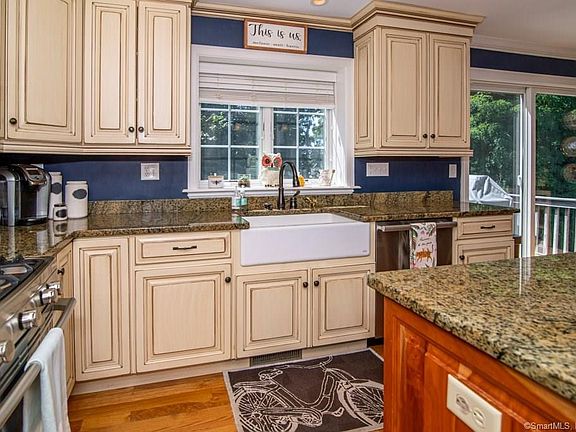From the minute you walk through the door you will fall in love with the design and quality of the 2800 square foot home. Offering a very desirable open concept floor plan loaded with natural sunlight, this house will not disappoint you. Special details include hardwood floors throughout main level, 9 foot ceilings, detailed millwork, custom built ins, French doors, and more. Chef's kitchen has upgraded cabinets, stainless steel appliances, large island and eat in area opening up to a deck area. Family room has lots of windows and a wood burning fireplace and French doors opening to living room/study area. Formal dining room has beautiful shadow boxes and opens to kitchen area. Upstairs is even better with a master suite to impress with 2 closets, 1 a walk in, sitting area, master bath with whirlpool tub, tiled shower stall, and double sinks with granite. 3 additional bedrooms, another full bath with double sinks with granite, and a full sized laundry room. If this isn't enough, there is an additional 600 square feet in the newly remodeled walk out lower level. Offering a wet bar, half bath, family area, and storage. House is set on a private 1/2 acre lot in a fabulous location. Close to commuting, shopping, restaurants and you can even walk to the Cider mill. Don't miss the opportunity to make this beauty your own.