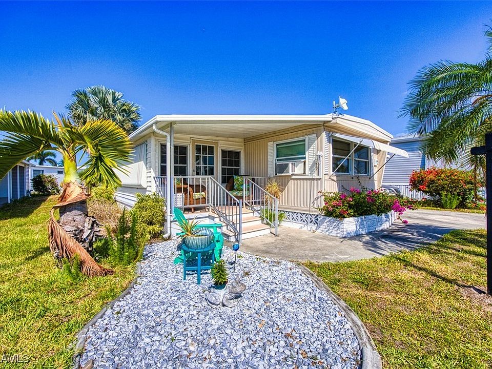 Welcome to your charming beach bungalow—the best value in Thunderbird Park, just 3 miles from Fort Myers Beach and the Sanibel Island Causeway! This cozy 2-bedroom single-wide home offers an unbeatable location and a relaxed 55+ Carefree lifestyle in one of the most desirable areas of Southwest Florida.You own the land here, and the incredibly low HOA fee of just $100/month includes cable, Wi-Fi, trash pickup, and access to a wealth of amenities. Enjoy the vibrant community atmosphere with a clubhouse & pavillon,heated in-ground pool, shuffleboard, bocce ball, horseshoe courts, and optional storage for your mobile toys (for a small fee).The home features a covered carport, a large screened enclosure for outdoor relaxation, and a spacious utility room with plenty of space to store tools, bikes, and more. A washer and dryer are included for added convenience.This unbeatable location puts you within walking distance to restaurants, a hardware store, entertainment, and several grocery options. Whether you're looking for a full-time residence, seasonal escape, or an affordable near the beach retreat, this bungalow has everything you need.Don’t miss this opportunity—schedule your showing today and start living the Florida lifestyle!