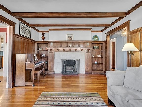 Gracious two-family Victorian located across from Coolidge Park. This 13 rooms, 5+ bedrooms, 3 bathroom home has 3412 sqft of living area & 5789 sqft of lot size. It has a detached two-car garage with plenty of height clearance. Both units have wonderful wood paneling & beams in the living rooms. Each has a fireplace & original built-in features. Each has front facing porches accessible from the living rooms. The bright first floor unit has 2 bedrooms 1 bath, with a good size kitchen. The 2nd/3rd floor second unit has 3+ bedrooms with a den, formal dining room and an eat-in-kitchen. Unit 2 has both updated bathrooms & newer kitchen appliances. Third floor bathroom has a skylight & heated floors. There are 3 additional parking spaces outside of the garage. Both units share a large back deck. This is a handsome home with a lot of storage spaces, build-in shelves & extra rooms to be used as offices or bedrooms. Situated on a 1-way street, close to Coolidge Corner, Harvard St & B line.