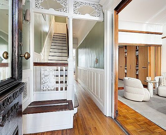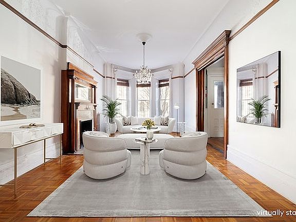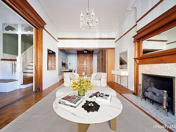 Enter at the grand triple parlor level where greatness and nostalgia awaits you. Here you will witness unlimited possibilities. Inside, note the intricate plaster detail, and wooden trim moldings. Open the blinds and lavish in the natural light from front and rear exposures. Two decorative fireplaces---a total of 7 throughout---and original fretwork highlight this area. A special note to townhouse dreamers: re-imagine the grand triple parlor from earlier days. With a little TLC you can recreate the magic with a modern take or keep it traditional.