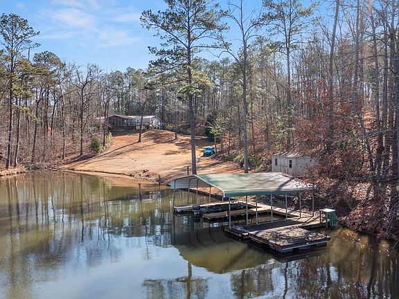 BACK ON MARKET DUE TO NO FAULT OF SELLER! This one has 2 Lots! 3 Bedroom 2 bath Clayton with Brick foundation -poured sidewalks-Covered boat dock with 15AMP/20AMP power at dock and home comes with a Generator! Full length Lakeside Deck with a huge 16 X 24 screened in portion. Open floor plan, Master suite on one end and 2 guests on the other- huge laundry room, and separate dining room! Island Kitchen-equipped with appliances, cook top, tons of cabinets and counter-space. Built in office "nook" outside the guest bedrooms. Double sink vanities in baths, walk in closets, linen closets and more. Additional Storage building- well manicured yard/landscaping. Water filter system. This one can be financed as it is on a permanent foundation. Boat Parking- RV or camper parking and More.