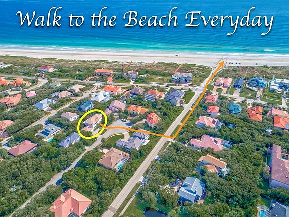 YOU'LL BE AMAZED as you enter through the new double door entryway of this gorgeous 4 bedroom, 4 1/2, bath estate home with screened pool & spa, 3-car garage, COMPLETE CONCRETE BLOCK CONSTRUCTION, double pane windows & barrel tile roof on a very large lot and quiet cul-de-sac. This elegant gem boasts an open & spacious floor plan with 10' ceilings, an excellent flow & an abundance of natural light! The spacious great room with corner fireplace is perfect for entertaining & the den has sliding doors leading to the tranquil and inviting sparkling screened pool & spa with covered lanai,Travertine stone & pool bath. The chef's dream gourmet fully-equipped kitchen has considerable space, a large separate dining area, exquisite Granite countertops, full backsplash, breakfast bar & walk-in pantry. The first floor bedroom has a fabulous garden window and plenty of space. There's also a beautifully remodeled full bath which is "pool planned". Impressive wrought iron bannisters lead upstairs with great use of space including a loft/office with built-in desk & awesome Lighthouse views! The magnificent master suite with corner fireplace has plenty of room, and the luxurious master bath is fit for a king & queen. The second upstairs master suite has a door to a spacious upstairs patio great for relaxing while you listen to the sounds of the surf & smell the ocean breeze. It also has a beautifully remodeled private bath with Quartz countertop & new vanity. The third upstairs bedroom is also spacious, light & bright. Also upstairs is a convenient laundry room with washer/dryer included. The 3 car garage with drive-thru bay is perfect for vehicles, boat, jet ski & all the beach toys and also has a full bath! Deeded walkway provides easy access to the pristine "no drive" beach. Other features include two new hot water heaters, security system & central vac.