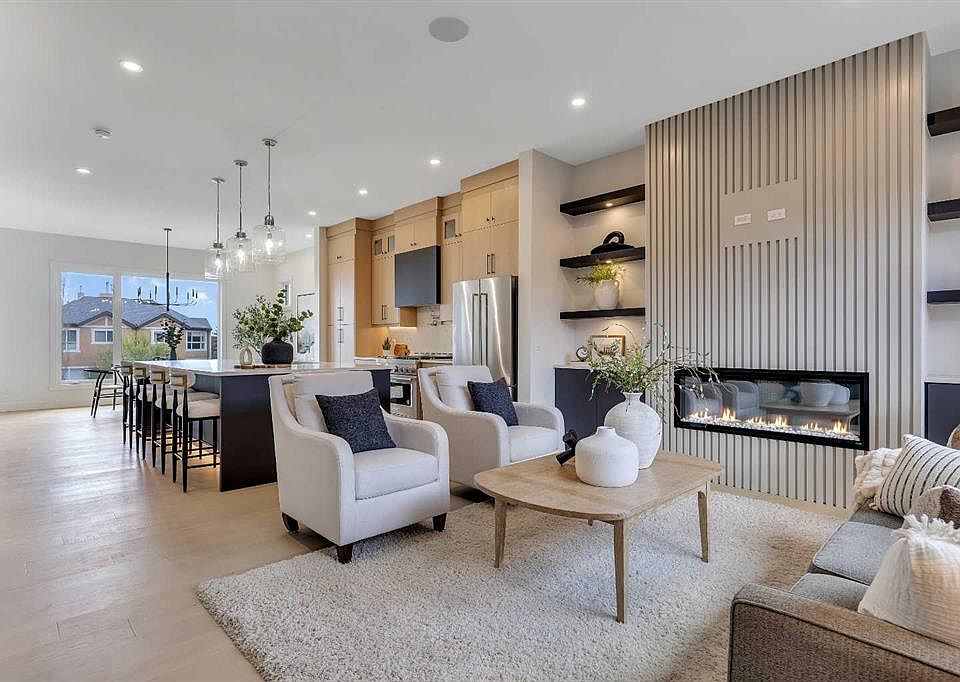 COLLINGWOOD LUXURY CUSTOM HOME | ATTACHED DOUBLE GARAGE | LEGAL 2 BDRM BASEMENT SUITE. Welcome to 42 Collingwood Place. Situated on a 32’ x 100’ lot atop a quiet cul-de-sac in Collingwood Place, this custom-built home features over 3,000 sqft of total living area. Every detail has been meticulously planned for OPTIMAL LIVING. The main floor features 10’ CEILINGS and a bright south-facing dining area to house all your guests over the holidays. The chef’s kitchen is built with an OVERSIZED ISLAND with quartz counters and LED-under-lighting, matching quartz backsplash, full-height cabinetry and a pot-filler above the 36” gas range. A COFFEE BAR with cabinetry and a beverage fridge adds convenience. A private office is secluded by custom French-inspired iron and glass casement sliding doors provides a sanctuary. The living room features an electric fireplace, custom LED shelving, an in-ceiling speaker system, and a powder room near the mudroom which featuring floor-to-ceiling cabinetry for ample gear storage. The ATTACHED double garage is FULLY INSULATED, drywalled, and includes a 200 AMP breaker, and gas heater and EV charger rough-ins. Upstairs, the primary suite offers breathtaking views of DOWNTOWN CALGARY and the ROCKY MOUNTAINS, an expansive walk-in closet, and a dual vanity ensuite with an OVERSIZED SOAKER TUB, STEAM SHOWER with dual niches, and a standalone VANITY COUNTER with a light-up mirror. A frosted glass window provides privacy while allowing in natural light. The laundry room features quartz counters, a sink, and full-height cabinetry. Two additional bedrooms overlook NOSEHILL PARK, each with custom closet built-ins. A main bathroom and linen closet complete this level. All bathrooms (except the powder room) include IN-FLOOR HEATING and LED underlighting. The LEGAL BASEMENT SUITE boasts 9’ ceilings, a spacious kitchen, a large living area, and TWO BEDROOMS. The suite comes with a full kitchen / laundry appliance package. The mechanical room features TWO furnaces, an A/C unit for the main, a sump pump, radon rough-in, and an oversized hot water tank. The private courtyard-style backyard (vinyl decking) includes outdoor speaker rough-ins and a gas outlet for a BBQ or fire table. CONFEDERATION PARK is just steps away to the south, with Nose Hill Park to the north. Short walk to Collingwood elementary school , St. Francis High School & bus stops, plus easy access to downtown. Close to all amenities—Calgary Winter Club, shopping malls, U of C, Children and Foothills Hospitals. This home blends urban convenience with natural beauty and offers downtown & mountain views. Fully hardwired for security systems and cameras, it also qualifies for CMHC’s 30-year amortization and GST rebates—check with your lender/accountant! Built by Archway Developments, a family-owned business with 20+ years of experience, this home is backed by Progressive New Home Warranty.