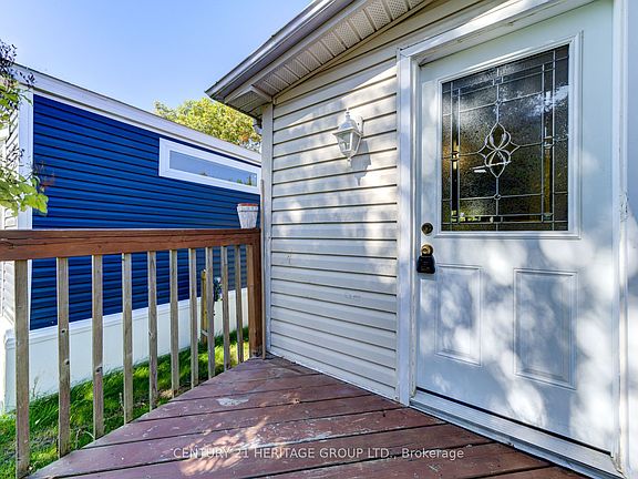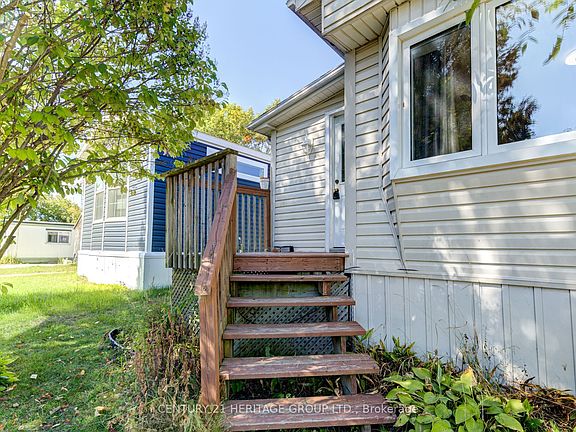 This modular home situated in a quiet, well-maintained park, offering a peaceful and convenient lifestyle. features over 1400 square feet of living space, open concept living room, large oak kitchen, 3 bedrooms, two bathrooms primary bedroom with ensuite and jet tub, wrap around deck which backs onto the private yard back into green space, a huge garden shed provides additional storage space and work shop. ***SOME PICTURES ARE VIRTUALLY STAGED***