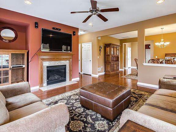 Don't miss this fantastic 2 bedroom, 2 bath home in the Gatherings loaded with upgrades throughout. A foyer entry with coat closet gives way to a magnificent floor plan. The spacious, eat-in kitchen shines with granite countertops, a large pantry, 5 burner stove with regular and convection oven, door to the laundry room, and another door to the 2 car attached garage with opener. A dining room leads to the living room with a gas burning fireplace hosting marble surround and wood mantle, wired for surround sound, and door to the huge 14x32 stamped concrete patio. Enjoy your master retreat which easily holds a king sized suite with room to spare, a large walk-in closet, and a master bath with walk-in shower stall, water closet, double sinks in a raised vanity with granite countertop, and a linen closet. A second bedroom also features a large walk-in closet and is serviced by a second full bath. Upgrades include: energy saving package, outside electric package, brand new bedroom carpet (both bedrooms), fresh paint throughout, handicap accessibility, fans in bedrooms and living room, brushed nickel fixtures, EP Henry paver front walk way and an irrigation system. Situated on a corner lot in a friendly, 55+ community with fantastic amenities such as: clubhouse, fitness center, gazebo overlooking a beautiful pond, outdoor pool, tennis and bocce ball courts and much more!