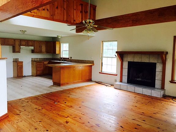 Private paradise only minutes from town!!!! 3 bedrooms and 2 baths on 2 acres with a large loft that could serve as a fourth bedroom if needed. Huge master bedroom and sunken tub in master bath along with walk-in shower. Beautiful pine floors in living area along with wood burning fireplace. Charm is complete with spacious front and back porches perfect for rocking chairs!!!