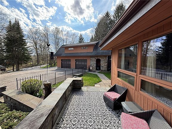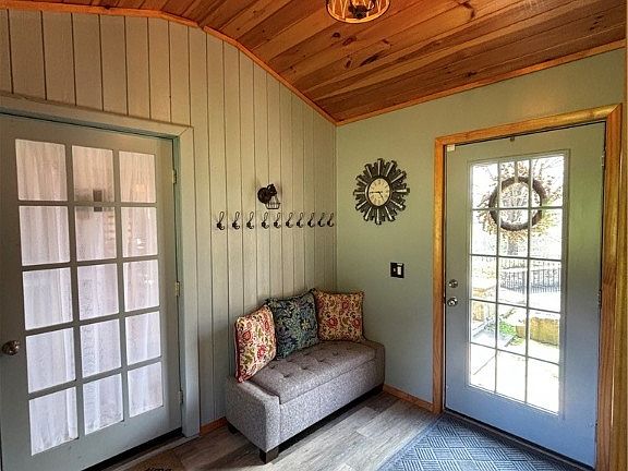 Step into one of the most unique and meticulously maintained properties in the county - this stunning 2-bedroom, 2-bath is a true showstopper. 1,711 sq ft. The main level includes a large bedroom with knotty pine ceiling, updated bath with walk-in shower, newer cabinetry and tasteful finishes. The kitchen is a chef's dream with granite countertops, custom cabinetry, large island with propane Kitchen Aid stove, newer stainless steel appliances, skylight, and generous counter space -ideal for entertaining or everyday living. The open-concept main level features soaring knotty pine ceilings, a dramatic great room with picturesque windows framing beautiful natural views from every room, and warm hardwood and laminate flooring throughout. The 2nd floor offers an open loft-style primary suite with skylights that overlook the great room, creating a light-filled and airy retreat with tranquil views from every window with its own updated private en suite bathroom with walk in rain shower.