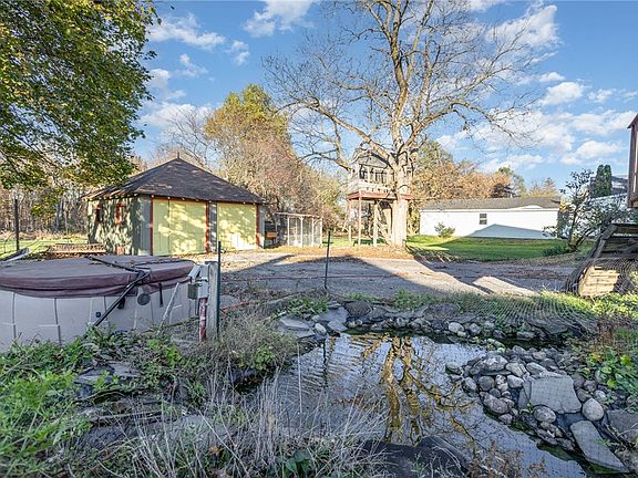 Brimming with potential and transparently priced! This spacious village home offers ample room for the whole family and accessibility with an elevator to the porch, 32” doors, and a chairlift. Freshly painted exterior (2025) and newer roofs over the kitchen and porch (2023). The expansive yard feels more like rural than village living—complete with a koi pond, hot tub, and chicken coop that remain with the property. Inside, enjoy meal options in the formal dining room or the eat-in kitchen, which features plenty of cabinetry and counter space. Perfectly sized dining room table will also remain with the property.  A full bathroom is conveniently located on both the main and second floors, and a newly added oversized closet provides excellent storage. The large living room, cozy bedrooms, and functional laundry space add comfort and practicality. A perfect blend of space, convenience, and potential. Open House 12:30-2pm on Saturday November 1st.  Delayed negotiations 11/3/25 at 5pm.