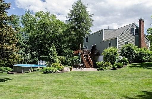 New to market ~ Exceptional expanded Cape set on a gorgeous half acre lot located at the top of desirable Sunset Drive. This property has been impeccably maintained by its current owners. The first floor features an open floor plan with beautiful addition incorporating a living room with natural gas stove, large kitchen with granite counter tops, breakfast bar, and french doors leading to the deck. Spacious dining room with hardwood floors and gas fireplace, cozy den or 4th bedroom, and a remodeled full bath. A rear deck overlooks the lush, private back yard with swimming pool offering privacy year round. The second floor boasts a wonderful master bedroom, second full bath, and two additional bedrooms. Tons of storage! Updates include Andersen replacement windows, updated roof, heating system, and central air! Full, seven zone in ground sprinkler system. Professionally landscaped lot and stone patio.