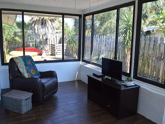 Recently remodeled, 3BR, 2BA in beach side community. Tile floors throughout. Master bath with walk in shower, full hall bath, fully enclosed Florida room, Patio, huge fenced in yard with outdoor shower. 1/2 block to the ocean for morning walks on the beach. Must see!! Utilities not included. Fully Furnished