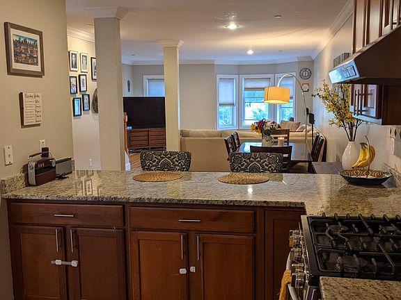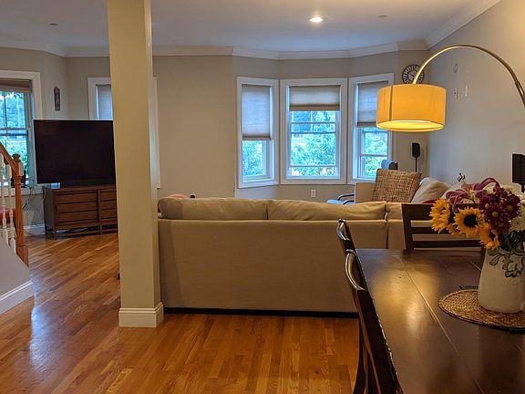 No Broker fees. Welcome to your new home at 42 Sylvan Street, Unit 4 in the picturesque town of Melrose, MA! This delightful 3-bedroom, 2.5-bathroom townhouse offers a perfect blend of modern amenities and classic charm, ideal for families, professionals, or anyone seeking a comfortable and convenient lifestyle with easy accessibility Boston/Cambridge areas via Orange line (oak grove) 5 minutes away The townhouse is a corner unit and part of small community of four townhouse Features: Spacious Living Area: The open-concept living and dining area is perfect for entertaining guests or enjoying cozy family nights. Large windows flood the space with natural light, creating a warm and inviting atmosphere. Modern Kitchen: The well-appointed kitchen features stainless steel appliances, granite countertops, ample cabinet space, and a breakfast bar for casual dining. It's a chef's dream! Master Suite: The master bedroom boasts an en-suite bathroom, generous closet space Two Additional Bedrooms: The two additional bedrooms are spacious and bright, with ample closet space. Perfect for family, guests, or a home office. Bathrooms: With two full bathrooms and a convenient half-bath on the main floor, morning routines will be a breeze. In-Unit Laundry: No more trips to the laundromat! This townhouse comes with a washer and dryer for your convenience located on first floor. Private Garage & private parking space: Keep your vehicle safe and secure with the attached garage. One private parking spot right outside in driveway. Additional parking spaces available street side Outdoor Space: Enjoy your morning coffee or evening relaxation on the private patio. It's perfect for summer barbecues and outdoor gatherings. Central Air Conditioning: Stay comfortable year-round with central heating and air conditioning. Pet-Friendly: We welcome your furry friends! (Additional pet deposit may apply.) Location: Situated in the heart of Melrose, this townhouse is just minutes away from downtown shops, restaurants, and parks. You'll love the convenience of nearby public transportation options, including the Oak grove train station (Orange line), Melrose Highlands commuter rail station, making your commute to Boston a breeze. Top-rated schools and community amenities make this a perfect place to call home. Renter pays for utilities - water/sewage, gas, electricity Owner pays landscaping, snow removal and spring/fall cleanup NO Smoking inside the house please