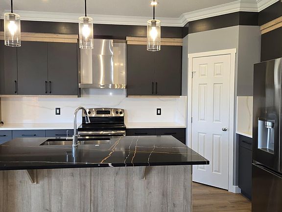 Located in the desirable community of Tonewood, this beautiful rental home offers a double attached garage and modern finishes throughout. Enjoy luxury vinyl flooring across both the main and upper levels (excluding bedrooms) and elegant crown molding in living areas. The kitchen features a high-end fridge and dishwasher, while the laundry room includes top-tier washer and dryer units. Additional upgrades include a water softener system, 4 Color Vision security cameras with DVR, and a garage door opener with exterior keypad. Step outside to a concrete backyard pad with gas line ready for BBQs and a finished sidewalk. Basement is unfinished, offering extra storage space. Nearby amenities include Jubilee Park, schools, playgrounds, shopping, and quick access to major commuter routes. Perfect for tenants seeking comfort, security, and convenience.