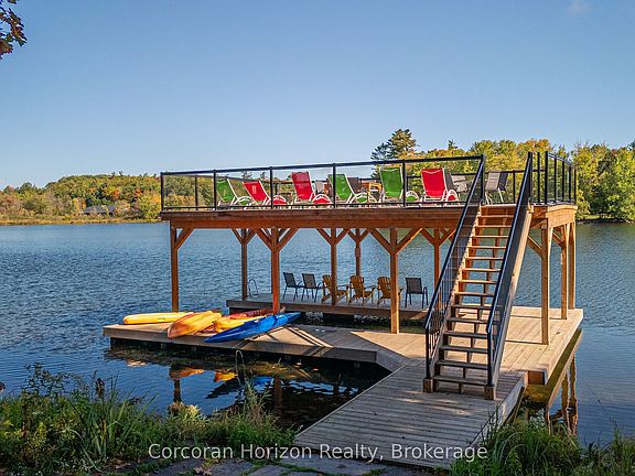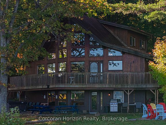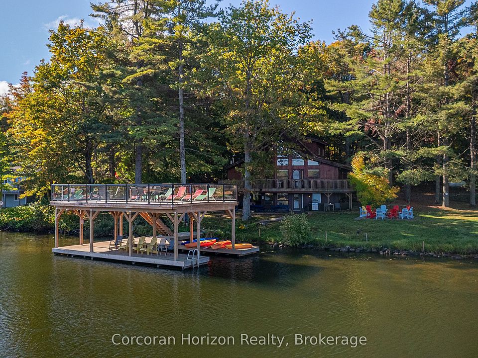 Welcome to this beautiful & unique A-frame cottage on Lake Muskoka in Port Carling, the heart of Muskoka. This 4-season cottage is fully renovated and ideally located across from Hanna Park and beach. Boat to downtown Port Carling in 2 mins and enjoy shopping, dining and watch the Segwun steamship travel through the locks over to Lake Rosseau. This rare property offers expansive waterfront living with 211 ft of waterfront, a recently improved dock, complete with a 700 sq. ft. sun deck and a covered single boat slip. The sleek glass railing on the deck makes it perfect for entertaining or simply relaxing while soaking in the views. This property offers easy access to Lake Rosseau and, from there, Lake Joseph, giving you seamless boating between all three of Muskoka's most sought-after lakes. The dramatic A shape floods the interior space with natural sunlight through its soaring windows. The recently renovated kitchen provides ample room for cooking and entertaining. Flowing from the kitchen is an open concept dining and living room, complete with a floor-to-ceiling stone fireplace, inviting family and friends to make lasting memories. Enjoy your meals or morning coffee on the wrap-around deck accessible from the dining room and kitchen. On the main floor, there are two spacious bedrooms and a full bathroom. The second-floor loft, with its own bathroom, offers scenic views of the waterfront through the large windows, a truly breathtaking spot to unwind. The lower level continues the open concept living with a large family room, two bedrooms and a full bathroom. Walk out from the lower level to a stone patio, which includes an expansive fire pit at the water's edge and a 6-person hot tub overlooking the lake and boathouse. Significant upgrades bring peace of mind, including a new septic system, improved crib/dock and boathouse (2023), 24 kW Generator, and electric car charger. This property has a successful track record of rental income.