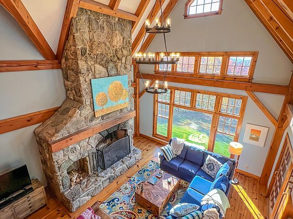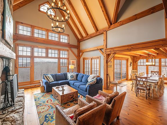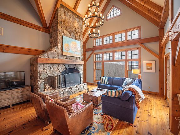 Spectacular Post and Beam home on 10.8 private acres with long range mountain views. This true Vermont getaway, sits on a private parcel on a dead end road, just 1.5 miles to the Mount Snow ski area, and a short drive to the Hermitage Club, nearby lakes, and villages. The home features a 2 story great room with exposed post and beam woodwork and joinery throughout, as well as large windows open to the views and southerly exposure. There is a floor to ceiling stone fireplace that befits a home of this caliber. Off the great room is a spacious dining area which opens to the large country kitchen with updated stainless high end appliances. The main floor also features a large primary suite with soaking tub and tiled shower. There is also a main floor guest half bath and spacious mudroom for all your gear off the covered front porch, and 2 car garage. Upstairs is a large guest suite, loft ideal for play or work space, and dual vaulted guest rooms with views and 3rd bath. The walkout lower level has a tremendous family room with high ceilings, great light, entertaining kitchenette, 4th full bath ideal for overflow sleeping and great toy garage for snowmobiles and more. In addition the home has a rear deck for entertaining, direct access to VAST snowmobile trails, and babbling brook. The home is also prewired for an outdoor hot tub, has high speed cable internet, full led lighting, wifi heat and water systems, and UV tinted windows.