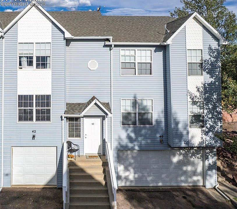 Experience charming mountain town living in this beautiful Townhome featuring 3 bedrooms and 3 bathrooms across 1,438 square feet. Enjoy stunning mountain views from your walkout back patio and relax in the inviting living area with a cozy fireplace. The open kitchen is equipped with granite counters, stainless steel appliances, a stylish farmhouse sink, kitchen pantry, and luxury vinyl plank flooring for durability and elegance. Upper level includes the primary suite with a adjoining full bathroom, another bedroom/office and stackable washer and dryer. The basement bedroom also includes a adjoining 3/4 bathroom. Granite countertops are throughout the kitchen and bathrooms. There is a one car garage and plenty of guest parking to include a parking spot in front of the home. Enjoy the ease of maintenance-free living in a great location—close to Palmer Lake, parks, restaurants, and D38 Schools. With an easy commute to Denver or Colorado Springs and proximity to the United States Air Force Academy, this home truly has it all!