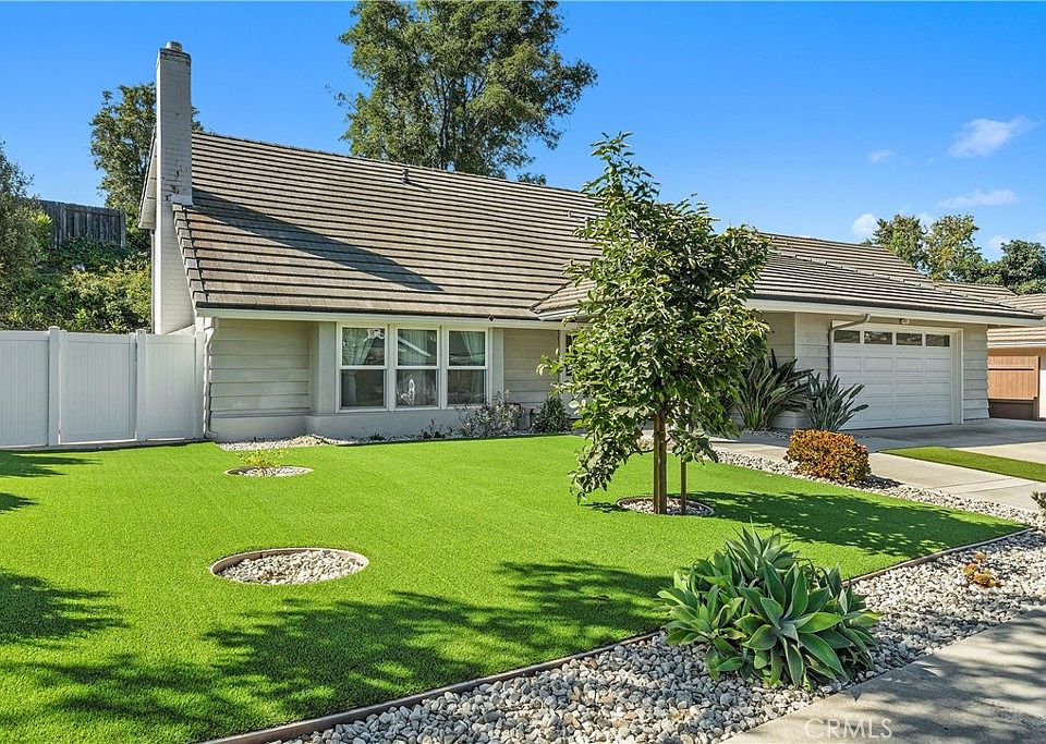 Welcome to 42 Verde Vista Drive, a beautifully updated home nestled in the heart of Thousand Oaks. This charming two-story residence offers over 2,200 square feet of living space, featuring 4 bedrooms and 3 bathrooms including a convenient bedroom and bathroom on the main level. The home boasts stunning curb appeal with well-maintained landscaping and low-maintenance artificial turf. Inside, you'll find brand-new laminate flooring throughout, a spacious and inviting living room with a cozy fireplace, and a separate formal dining area perfect for entertaining. The remodeled kitchen showcases elegant marble countertops and flows seamlessly to a sliding glass door that opens to the private, manicured backyard. The first floor also includes an updated bathroom, an indoor laundry area, and direct access to the two-car garage. Upstairs, the expansive primary suite features ample closet space and a beautifully remodeled en-suite bathroom. Two additional generously sized bedrooms and a third fully renovated bathroom complete the second floor. Step outside to your own serene retreat lush with mature landscaping, a lemon and persimmon tree, and plenty of space to relax and enjoy the California lifestyle. Additional upgrades include a new HVAC system, dual-pane windows, and a spacious driveway offering ample parking. This turnkey property is a rare find and ready for you to call home!