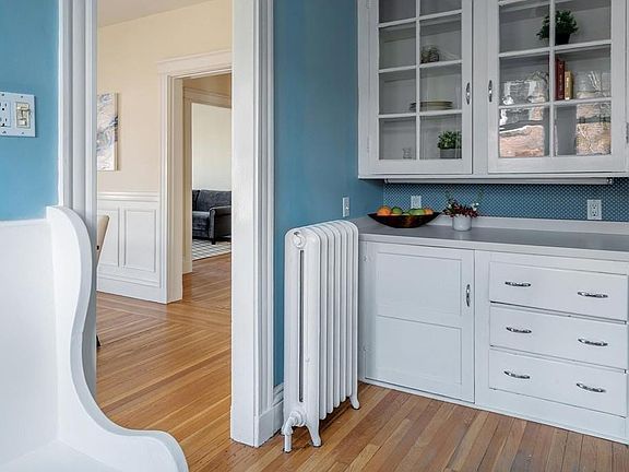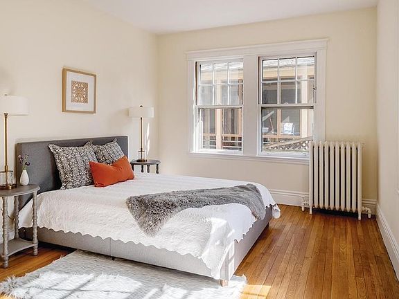 This sunny three bedroom, one and one-half bathroom condo offers a flexible floor plan with an option to use as a four bedroom. In addition to a separate living room and dining room, there is a sunroom which could be used as an office or den. This unit comes with garage parking, an additional outdoor parking space, a private back porch, a shared backyard with patio, and ample storage space in the basement. Ideally located in the Coolidge Corner/Devotion School district, convenient to shops, restaurants, and the B and C MBTA lines.