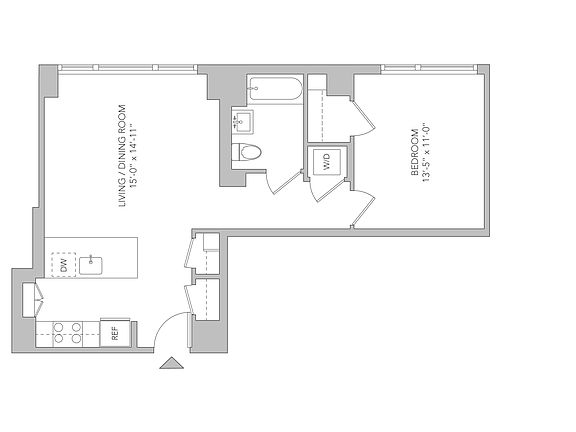 Enjoy a king sized one bedroom n the center of Manhattan. This true home boasts 10 ft. high ceilings, floor to ceiling windows, a chef's kitchen with built in pantry, extra- large breakfast bar to entertain 4 guests, and in-unit Bosch washer/dryer.