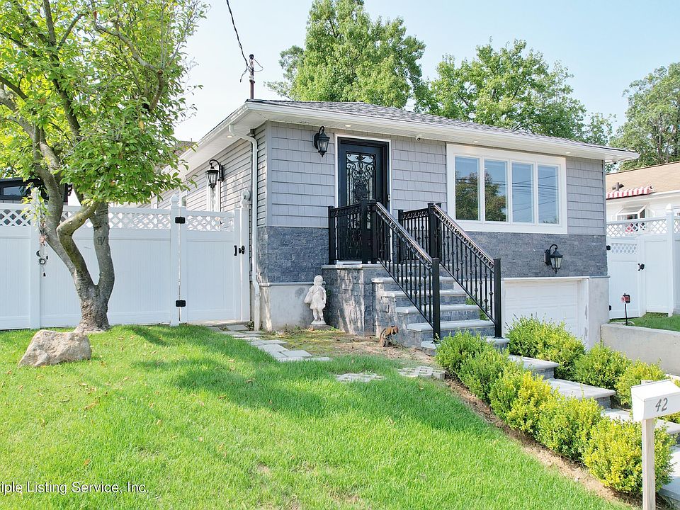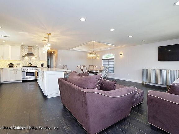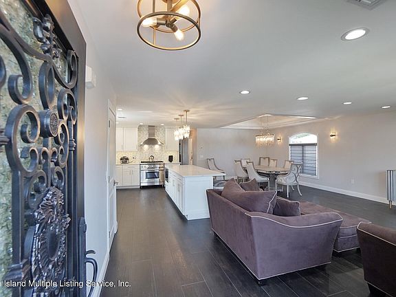 Move right into this impeccable single family ranch in the heart of Richmondtown - this stunning, fully updated home leaves nothing to be desired!! When you walk through the front door, you are in the heart of the home. The open concept living room, dining room & kitchen feature gorgeous wood grain tile flooring with radiant heat, recessed lighting, stainless steel appliances including a 36'' Wolf stove, custom cabinets with a 9' island & marble countertops. Also on this main floor is the spacious primary bedroom with double closets, the second bedroom & a 3/4 bath with a beautiful oversized vanity & double shower. The finished basement of this home provides additional space, storage space, laundry room and a 3/4 bath with a second laundry space inside. The backyard is a perfect escape with a 5 1/2' deep built-in pool, new pavers & concrete pads. Excellent mid-island location - close to shopping, restaurants and public transportation.