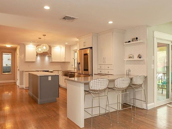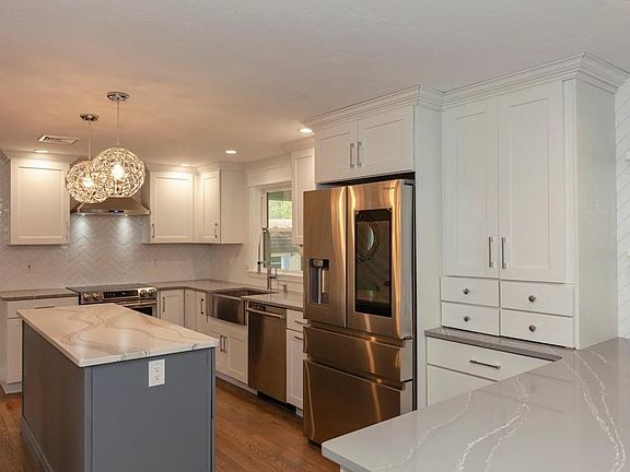 The most beautiful interior you will see this spring - by a long shot! Brand new designer kitchen, master bath, roof, vinyl siding, windows, heating system and central air. Contrasting white and gray Shaker cabinets. Custom quartz countertops with jaw dropping veining. Samsung french door counter depth refrigerator with Family Hub LED display, ultra fast boil induction range with hood, stainless apron front kitchen sink with commercial faucet and herringbone backsplash. The kitchen opens into a cozy family room with a fireplace wrapped in a reclaimed weathered wood accent wall. The style and class continues into the first floor master with new hardwood flooring. Master bath has a tiled stand up shower, double vanities, floor-to-ceiling shaker cabinets and more quartz! Enclosed back porch with wall mounted TV. Fully fenced in backyard with a storage shed for yard equipment and tools.